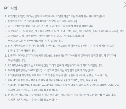 PG사의 무이자 안내 사항(2026년 1월 카드사 무이자 할부 안내) 하단의 유의사항을 확인 부탁드립니다.