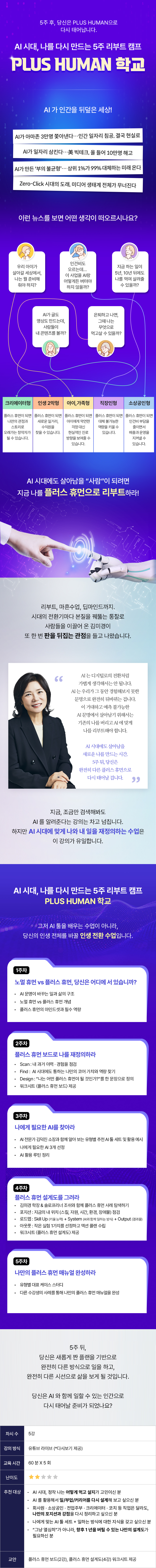 PLUS HUMAN 프로젝트는 2026년 1월 13일(화)부터 2026년 2월 10일(화)까지 5주간 라이브로 진행되는 강의입니다.