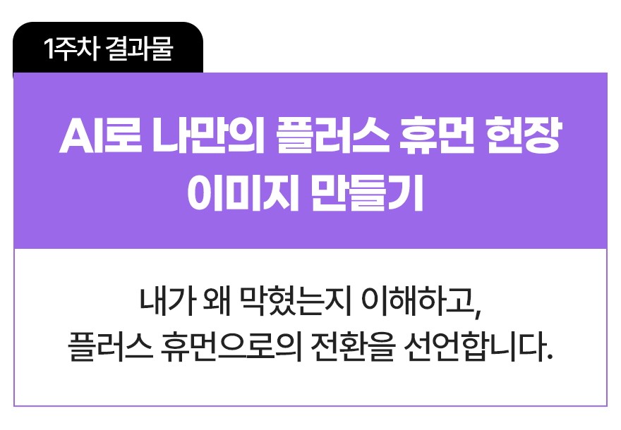 4주 라이브 + 오픈채팅 + 과제 전용 AI 도우미와 함께라면 여러분도 플러스 휴먼이 될 수 있습니다.