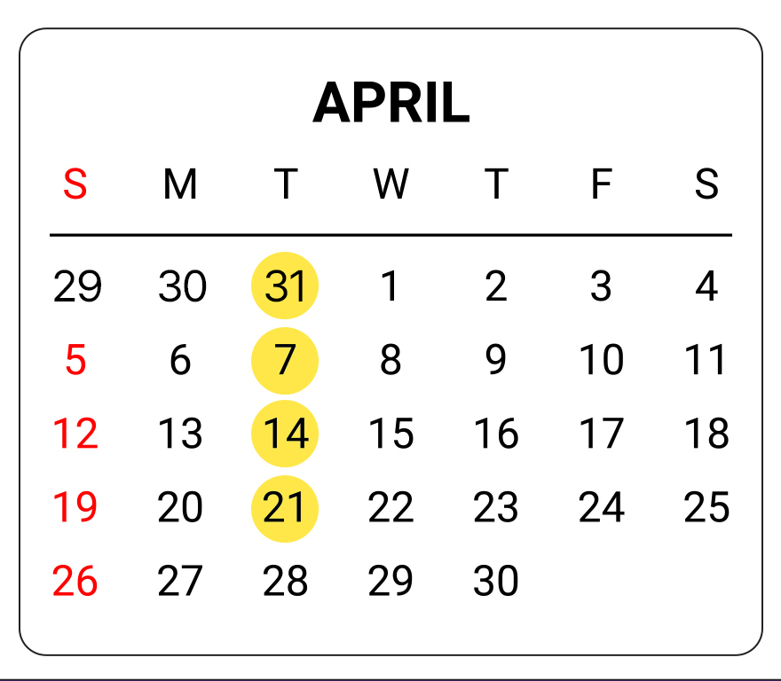 2026년 3월 31일(화)부터 2026년 4월 21일(화)까지 4주간, 저녁 9시 – 10시 30분에 만나요!