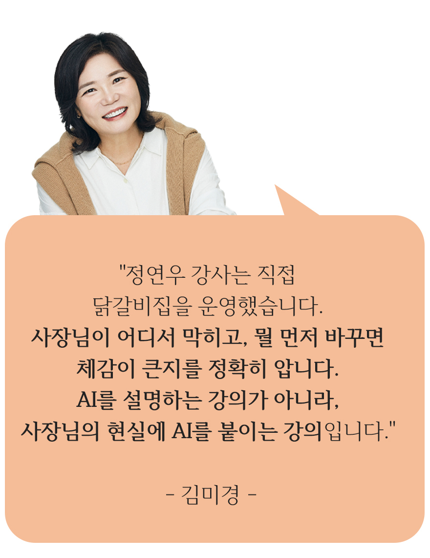 김미경 대표가 수많은 AI 강사 중 정연우를 택한 이유는 단 하나입니다.