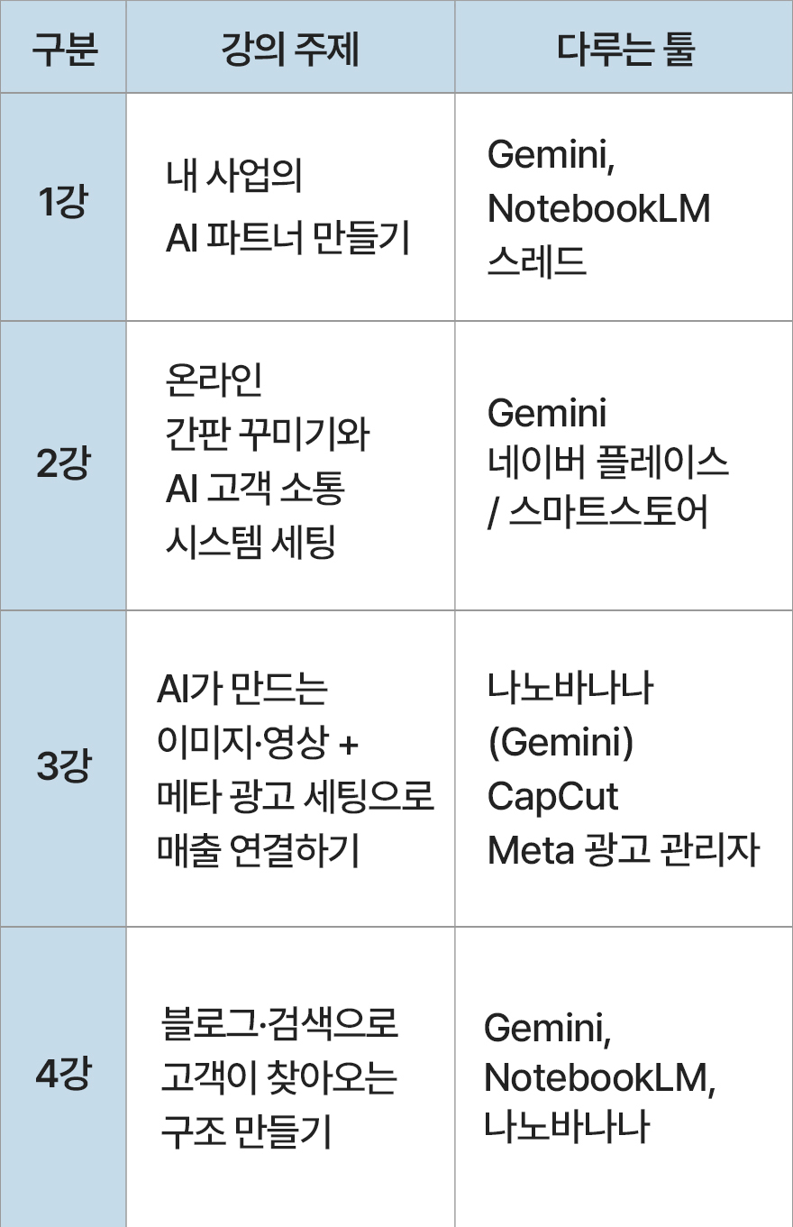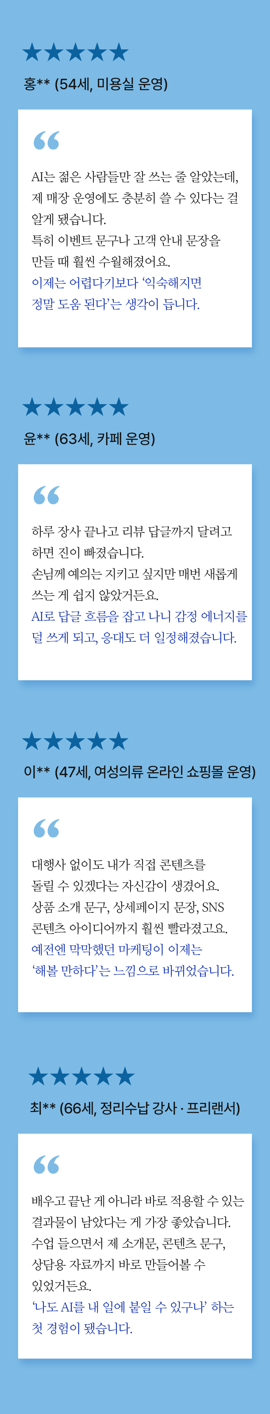 이번 과정은 AI를 멋있게 보여주는 수업이 아니라 사장님의 현실 업무에 바로 붙는 실전 수업입니다.