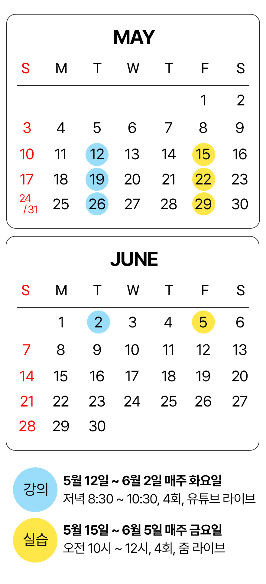 • 강의 4회: 매주 화요일 저녁 8:30~10:30