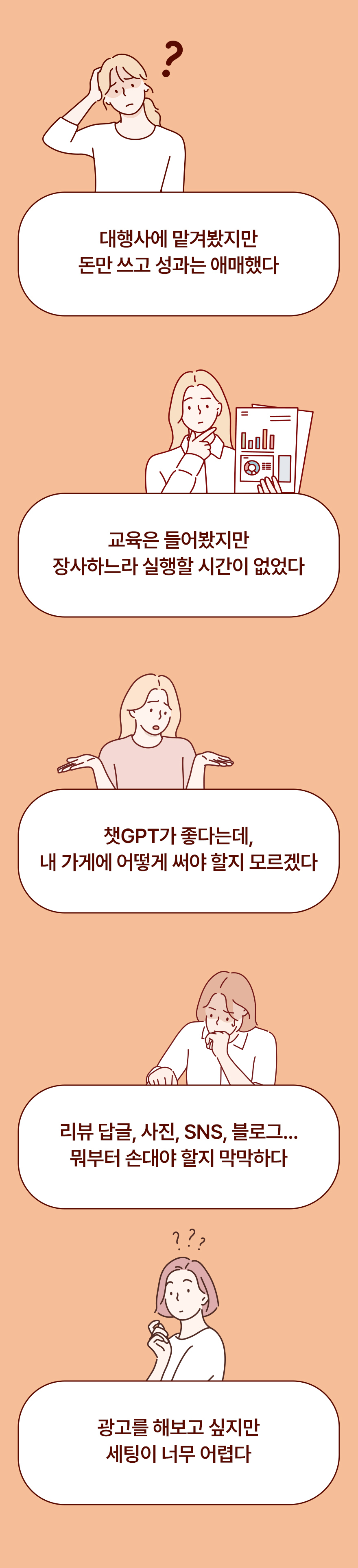 • 장사하느라 늘 바쁘지만 온라인 마케팅은 더 이상 미룰 수 없다고 느끼는 사장님
